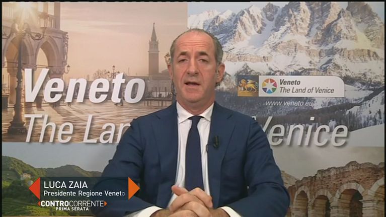 Luca Zaia, presidente della Regione Veneto, viene intervistato a Controcorrente relativamente alla sua scelta sui tamponi.