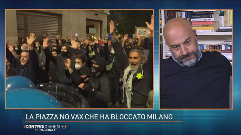 In piazza San Babila a Milano i manifestanti protestano per una trattativa fallita tra la questura e i manifestanti.