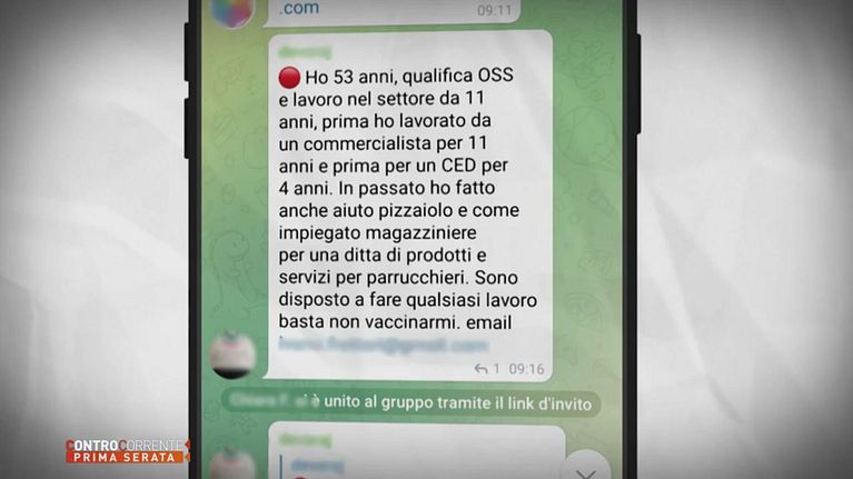 Su Telegram, chat di messagistica di riferimento per i No Vax, troviamo decine di annunci di chi cerca un impiego non vincolato da vaccino e tampone.
