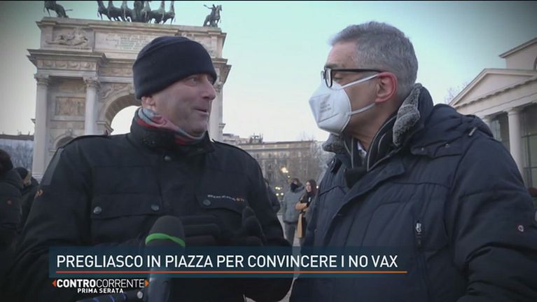 Il professore Fabrizio Pregliasco viene insultato spesso tramite sms e chiamate. Si è recato in piazza per un confronto con i no vax.
