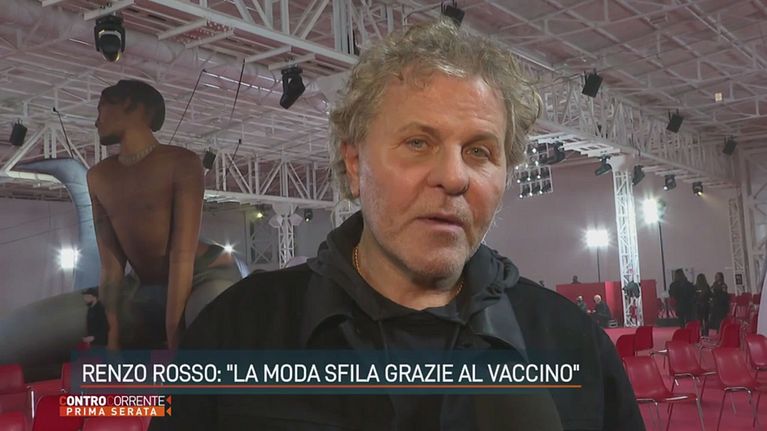Lo stilista Renzo Rosso alla settimana della moda di Milano ringrazia il vaccino per la possibilità di potersi godere la moda in presenza.