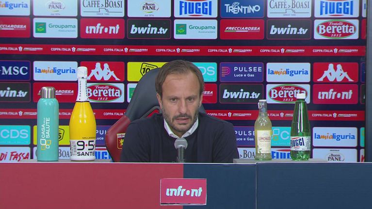 La delusione evidente dell'allenatore del Genoa dopo la sconfitta nel derby contro la Sampdoria.