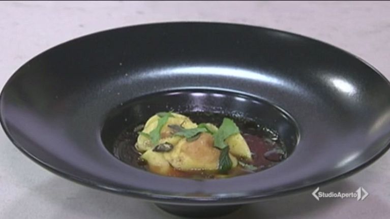 Cappelleti ripieni di zucca in infuso di bucce di zucca e menta