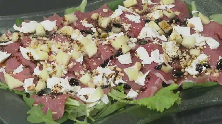 Carpaccio con misticanza, nocciole, primosale e mela