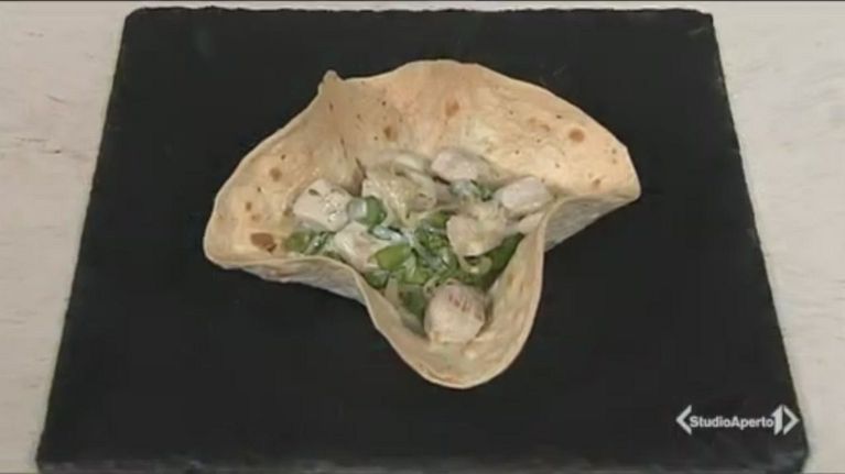 Cestini con bocconcini di pollo, asparagi e taleggio