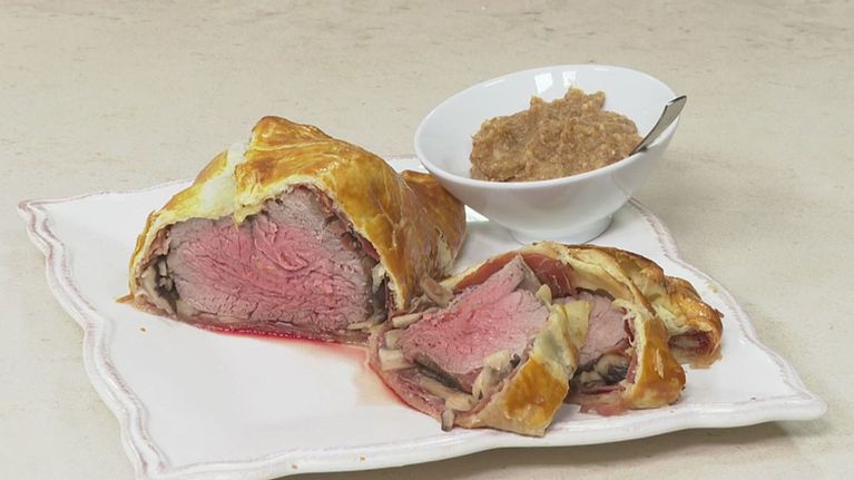 Filetto in crosta con funghi e salsa di datteri