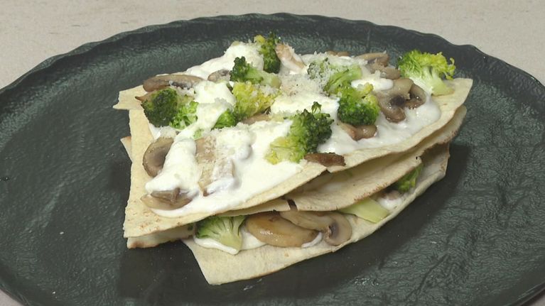 Un piatto sfizioso, molto gustoso: Lasagnetta di carasau con fonduta di pecorino e funghi, una ricetta con due tipici prodotti sardi.
