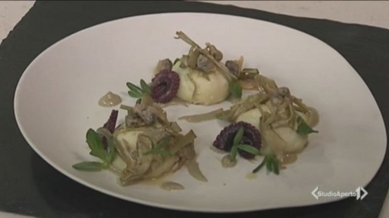 Una ricetta tipica a base di ricotta, polpo, vongole e carciofi.