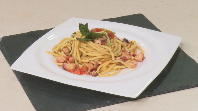 Pici al mojito di polpo con gin all'elicriso