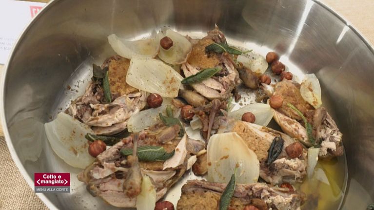 Quaglie cacio e pepe con cipolle al forno