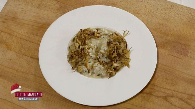 Risotto assoluto di carciofi e Tortino di carciofi taleggio e salsiccia croccante
