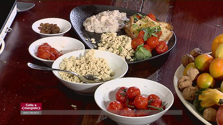 Scrumble di tofu con pomodorini e crostino dello sportivo