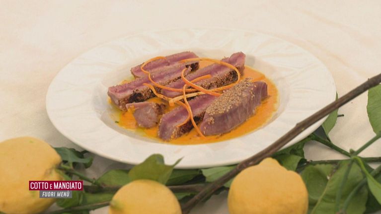 Tonnetto in sesamo con salsa di carote