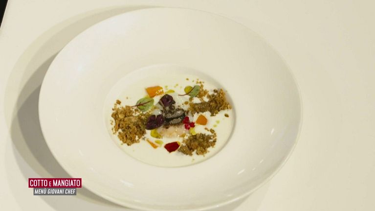 Uovo tiepido soffice di bufala crumble di pane e zucca