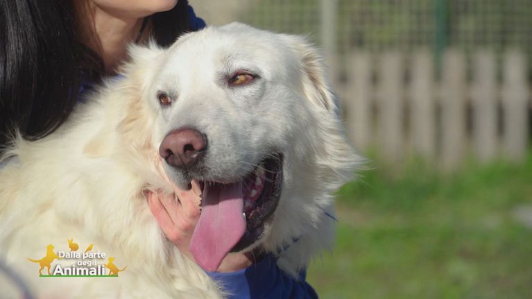 Enea è un bellissimo simil maremmano di circa un anno.