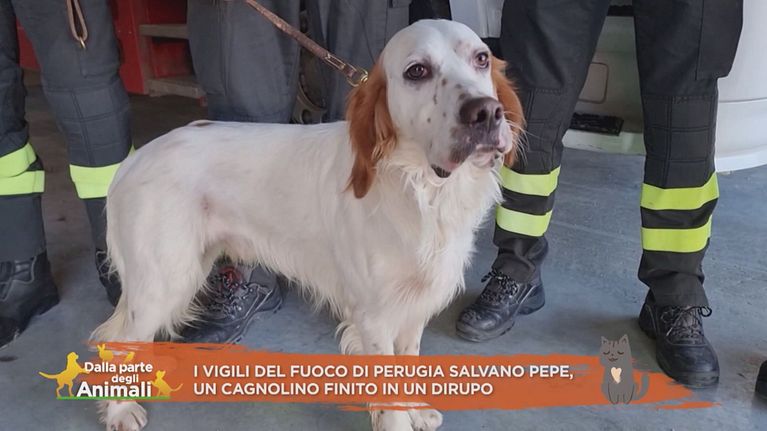 I vigili del fuoco di Perugia salvano Pepe, un cagnolino finito in un dirupo