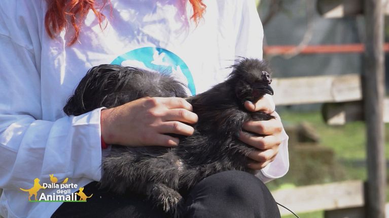 Un gallo salvato da un allevamento intensivo