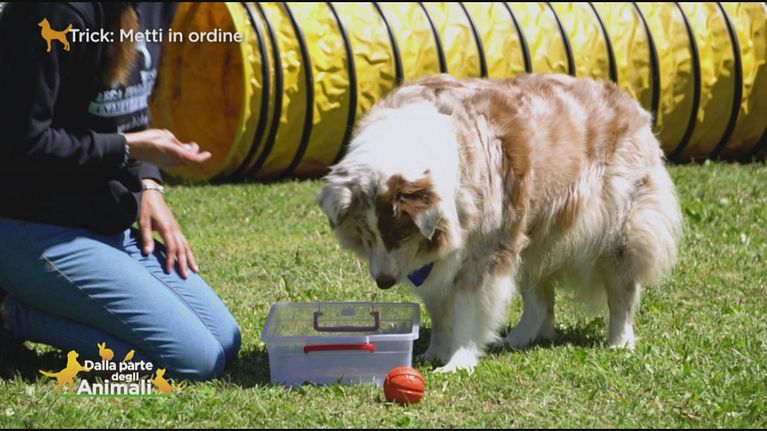 Nella lezione di oggi il cane potrà imparare a rimettere in ordine i suoi giochi .