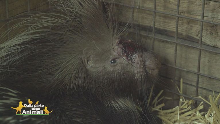Un'istrice salvato tra la neve