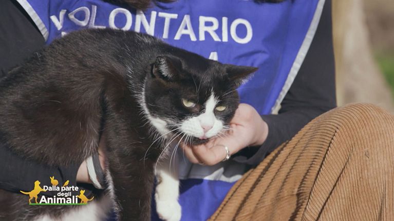 Una miciona bianca e nera in cerca di coccole.