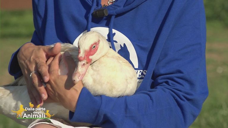 Un'anatra muta trovata che vagava nel parcheggio di un centro commerciale
