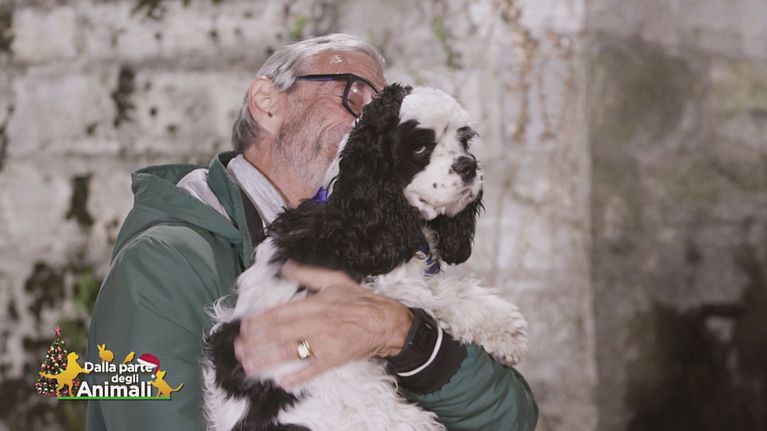 Ricky, un cocker americano bianco e nero, ha conosciuto Enrico che lo porterà a casa con sé.