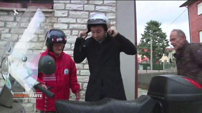 Nonna Luisa, 106 anni, viaggia in Vespa con il casco ben allacciato!