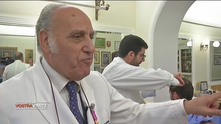 Piero Migliacci dall'età di 12 anni, oggi ne ha 80, che fa il barbiere, i suoi clienti tante persone famose e potenti.