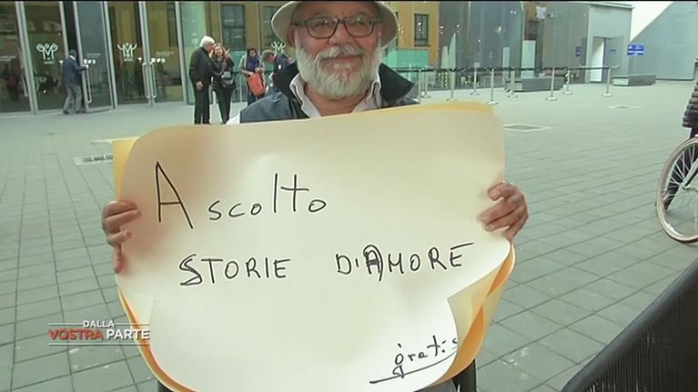 Salvino, un geometra di 63 anni, dal 2015 ascolta storie d'amore per le strade di Milano e, trasforma tutto in poesia.