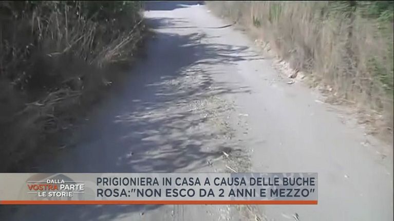 Rosa è disabile ed è prigioniera in casa perchè la strada in cui abita è talmente disastrata da impedirle di uscire.