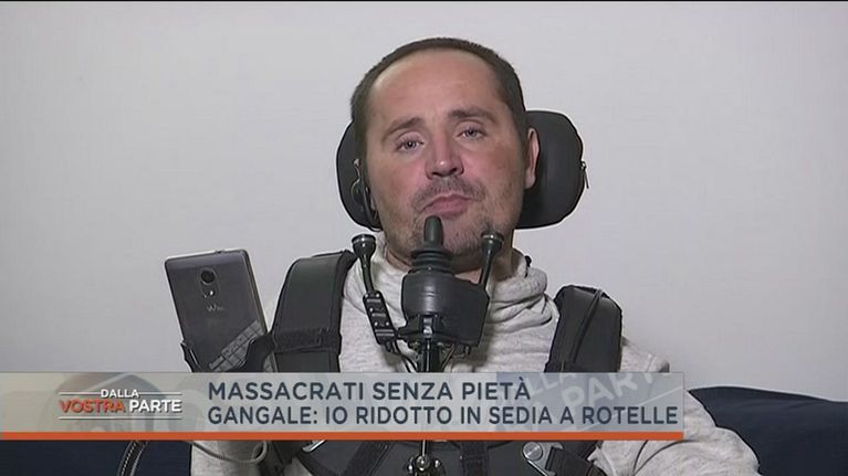 Gian MIchele Gangale, è stato ridotto su una sedia a rotelle dopo essere stato malmenato da 4 albanesi.