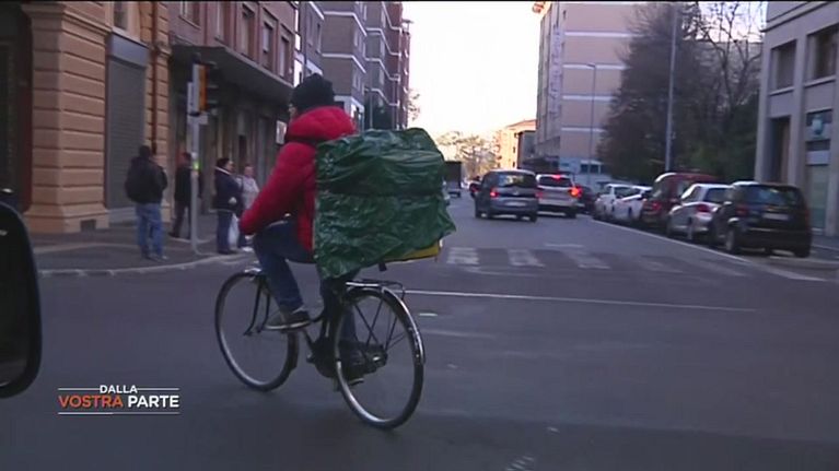 Un ragazzo universitario, consegna cibo ed altro con una bicicletta, viene pagato 6 euro l'ora senza alcuna sicurezza.