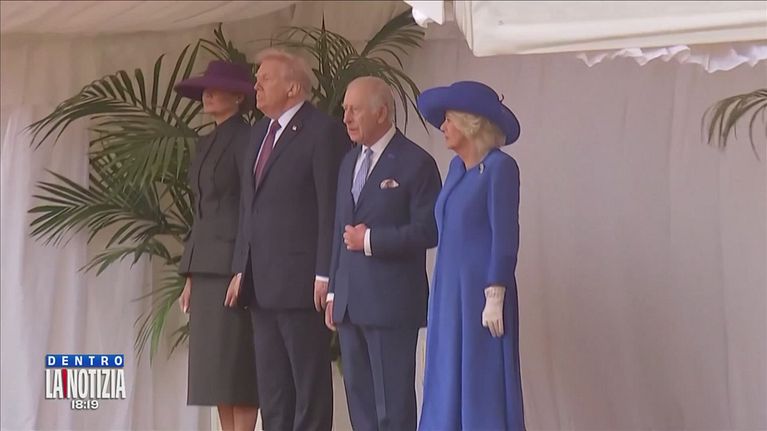 Re Carlo ha ricevuto il presidente americano Donald Trump al castello di Windsor con un picchetto d'onore