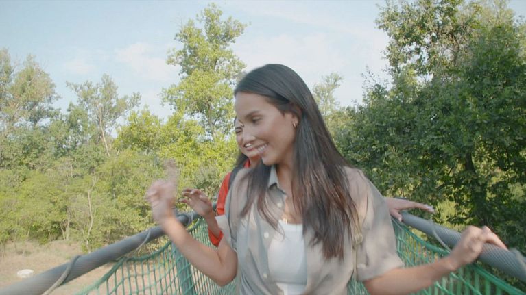 Dopo l'energia della passeggiata a cavallo, i tre disconnessi proseguono la loro avventura a Turbigo, vicino Milano, per percorrere un ponte tibetano lungo 70 metri sospeso sopra il fiume Azzurro.