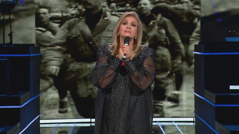 Iva Zanicchi canta una delle sue canzoni più profonde, "La riva bianca, la riva nera" accompagnata da una lettera scritta da un soldato letta da Romina Power.