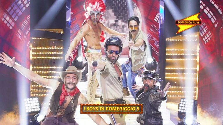 Per Domenica Alive i boys di Pomeriggio 5 si esibiscono sulle note di YMCA.