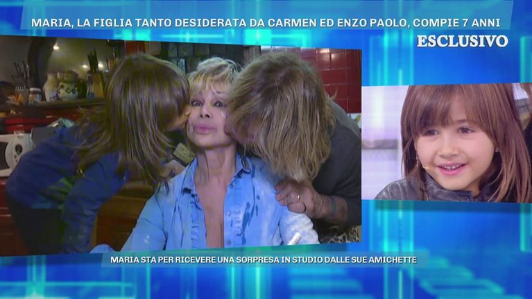 La piccola Maria inizia a prepararsi per la festa insieme a mamma Carmen e papà Enzo.