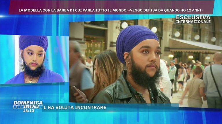 Le persone al passaggio della giovane modella barbuta, si chiedevano se fosse vera o meno.