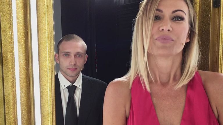 Eva Henger e suo figlio Riccardino salutano il pubblico di Domenica Live.