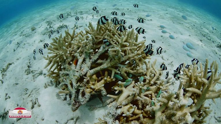 Il team esplora i fondali di Bora Bora, un acquario in cui si muovono centinaia di pesci che si nascondo tra i coralli.
