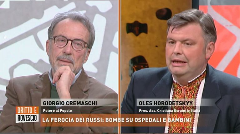 In studio Oles Horodetskyy, Presidente Associazione cristiana Ucraini in Italia e Giorgio Cremaschi di Potere al popolo.