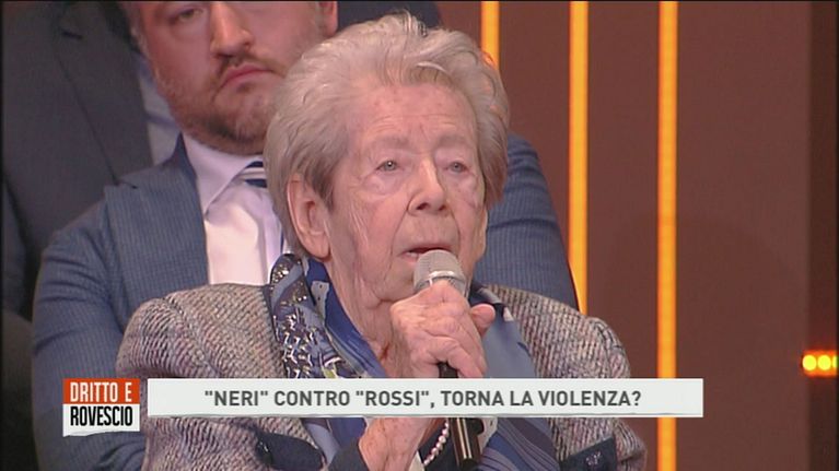 Fiamma Morini, ausiliaria della Decima MAS, difende i principi veicolati dal fascismo, facendo scaldare gli animi in studio.