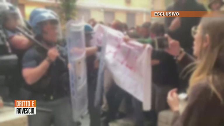 Gli scontri tra manifestanti e polizia all'Università La Sapienza.