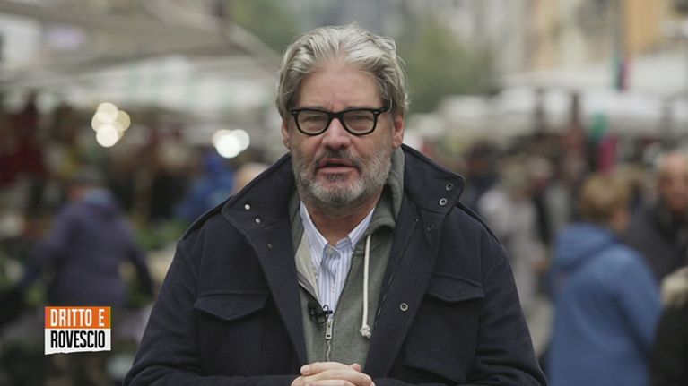 Paolo Del Debbio tra la gente in un mercato di Milano