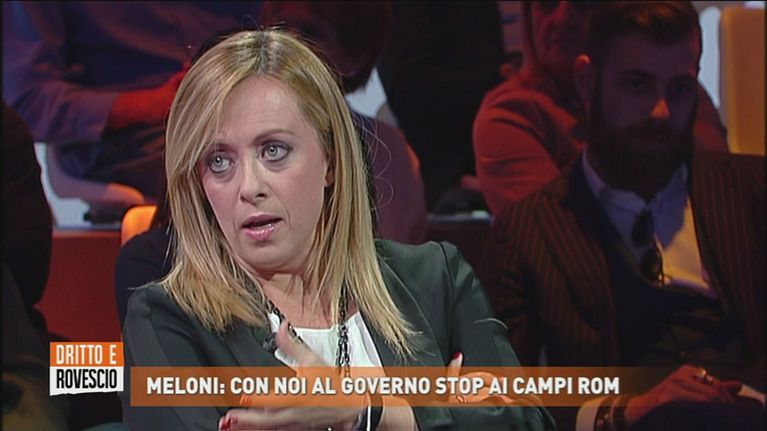 "Dritto e Rovescio" in un campo rom di Roma. L'opinione di Giorgia Meloni.