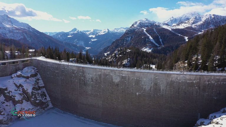 Massimiliano Rosolino raggiunge in bicicletta la diga di Campo Moro che, insieme a quella di Alpe Gera, fornisce energia a circa 70 mila persone.
