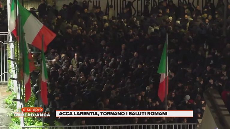 Torna la polemica su Acca Larentia. La clip documenta il ritorno dei saluti romani durante la commemorazione, tra immagini, slogan e reazioni politiche.
