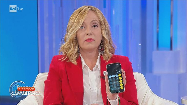 Alcune immagini dell'intervista di Giorgia Meloni nella trasmissione di Bruno Vespa a proposito dei soldi investiti nella sanità italiana.