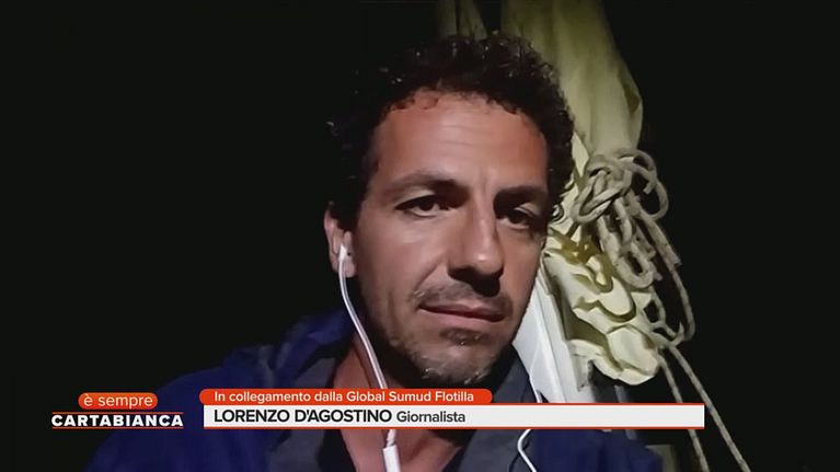 Bianca Berlinguer intervista a Lorenzo D'Agostino, giornalista in collegamento dalla Global Sumud Flotilla.