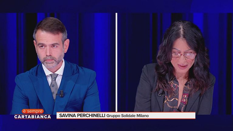 Savina Perchinelli, Presidente del Gruppo Solidale Milano, legge a "È sempre Cartabianca" alcune richieste d'aiuto ricevute dal Gruppo da famiglie in gravi difficoltà economiche.